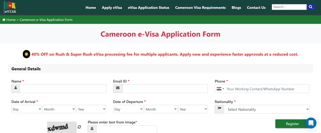 Begin application filing on the official Apply for the Cameroon e-Visa platform.