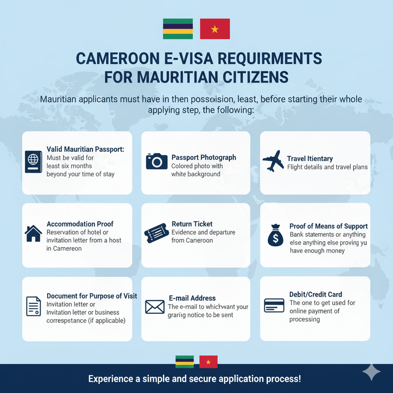 The Cameroon e-Visa for citizens of Mauritius provides free-flowing access to one of Africa’s most diverse nations. The digital system cut down instalments from a lengthy traditional visa procedure, thereby paving a fast track for approval with minimum paperwork.Mauritian travelers can now witness the mesmerizing landscapes, wildlife safaris, and cultural richness of Cameroon without being overwhelmed by the equally complex visa application procedure. Applying in advance and getting your documents really well prepared go a long way toward facilitating a smooth traveling experience from Mauritius to Cameroon.
